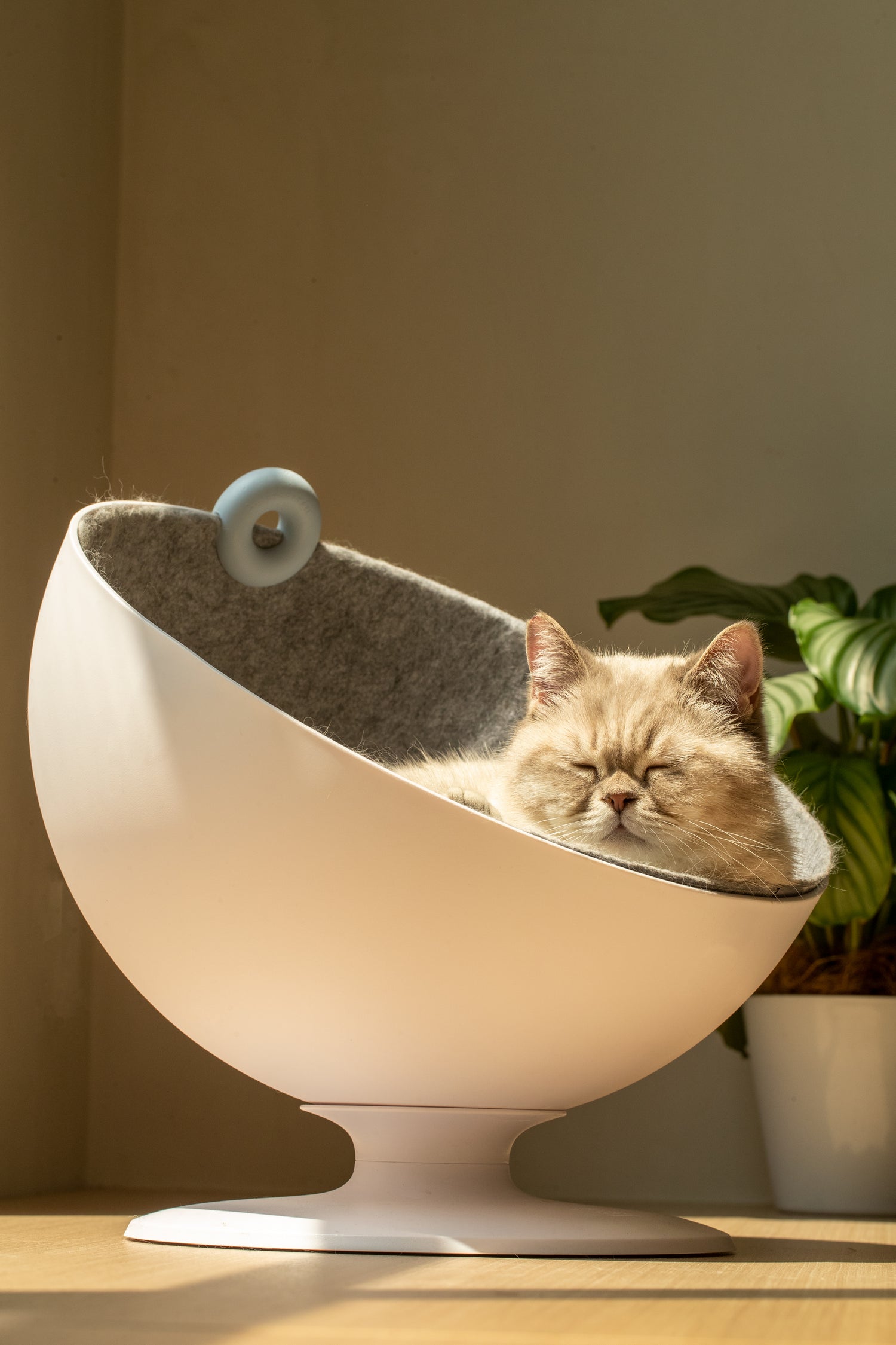 Furrytail's first product, the "White White Cat Bed," is officially unveiled. A minimalist geometric shape with a perfect dome.